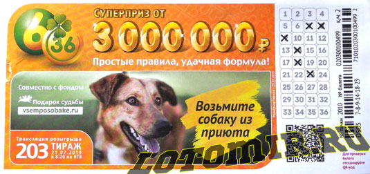 Розыгрыш и призы 203 тиража Лотереи 6 из 36