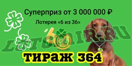 Проверить билет 364 тиража Лотереи 6 из 36