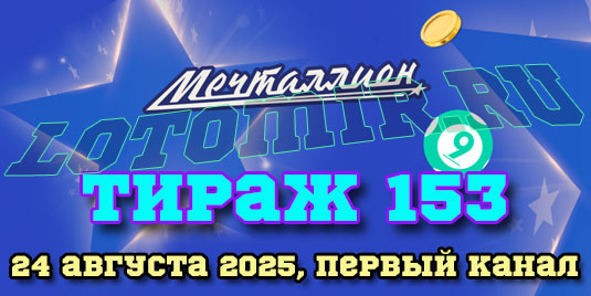 Невыпавшие числа в 153 тираже Мечталлиона: 02, 05.