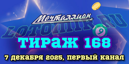 Представляем вашему вниманию результаты 168 тиража национальной лотереи Мечталлион, который состоялся 7 декабря 2025 года. Также у нас вы можете проверить лотерейный билет онлайн разными способами - по числам, по номеру билета, по QR коду на билете.