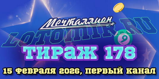 Представляем вашему вниманию результаты 178 тиража национальной лотереи Мечталлион, который состоялся 15 февраля 2026 года. Также у нас вы можете проверить лотерейный билет онлайн разными способами - по числам, по номеру билета, по QR коду на билете.