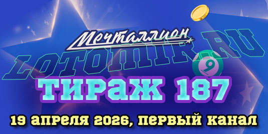 Представляем вашему вниманию результаты 187 тиража национальной лотереи Мечталлион, который состоялся 19 апреля 2026 года. Также у нас вы можете проверить лотерейный билет онлайн разными способами - по числам, по номеру билета, по QR коду на билете.