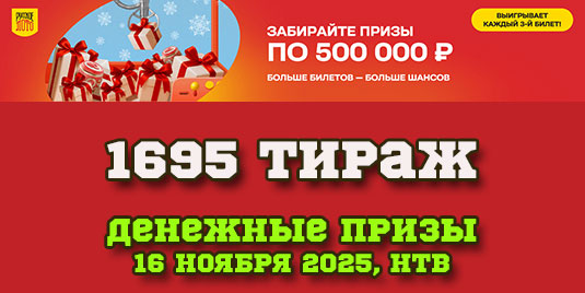 Кроме множества мелких, в 1695 тираже ведущие разыграли и крупные денежные призы. Найдите себя среди победителей и узнайте, насколько повезло вам!