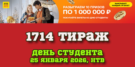 Тиражная таблица №1714 «Русское лото» от 25/01/2026