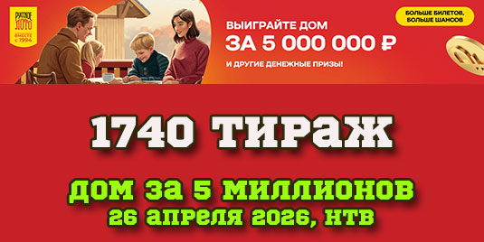 Представляем вашему вниманию результаты 1740 тиража Русское Лото, который состоялся утром 26 апреля 2026 года и где разыгрывались 5 миллионов рублей на загородный дом и другие денежные призы. У нас вы можете проверить билет Русского лото онлайн разными способами - по числам, по номеру билета, по QR коду на билете, по тиражной таблице.