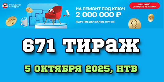 Тиражная таблица №671 «Жилищная лотерея» от 05/10/2025