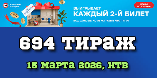 Тиражная таблица №694 «Жилищная лотерея» от 15/03/2026